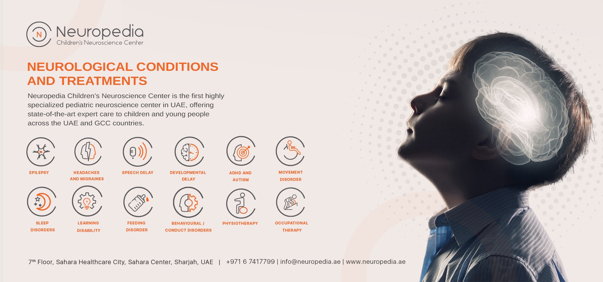 Neuropedia Children’s Neuroscience Center is the first highly specialist pediatric neuroscience center in UAE, offering state-of-the-art expert care to children and young people across the UAE and GCC countries.